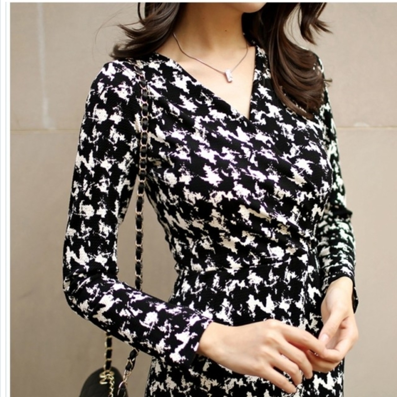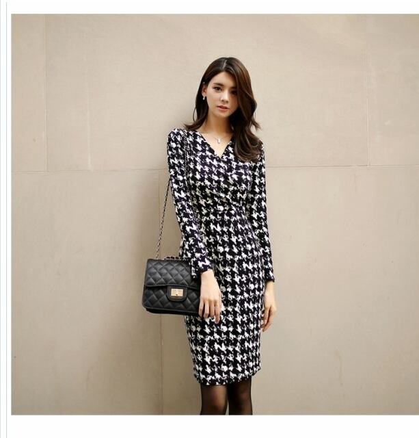 大人 ワンピース タイト 膝丈 長袖ワンピース Vネックタイトワンピース ブラック 大人エレガント セクシー 上品 オフィスレディー 二次会