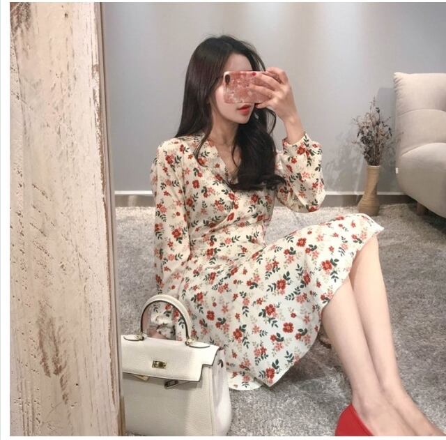 花柄 ロングワンピース 長袖 ワンピース シフォンワンピース アシンメトリー 長袖 ベルスリーブ 花柄 フラワープリント パーティドレス