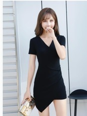 大人 ワンピース タイト 膝丈 サイドタック 半袖ラップ風ワンピース 着回し 伸縮 美脚 スリム スマート セクシー シンプル 無地 お呼ばれ