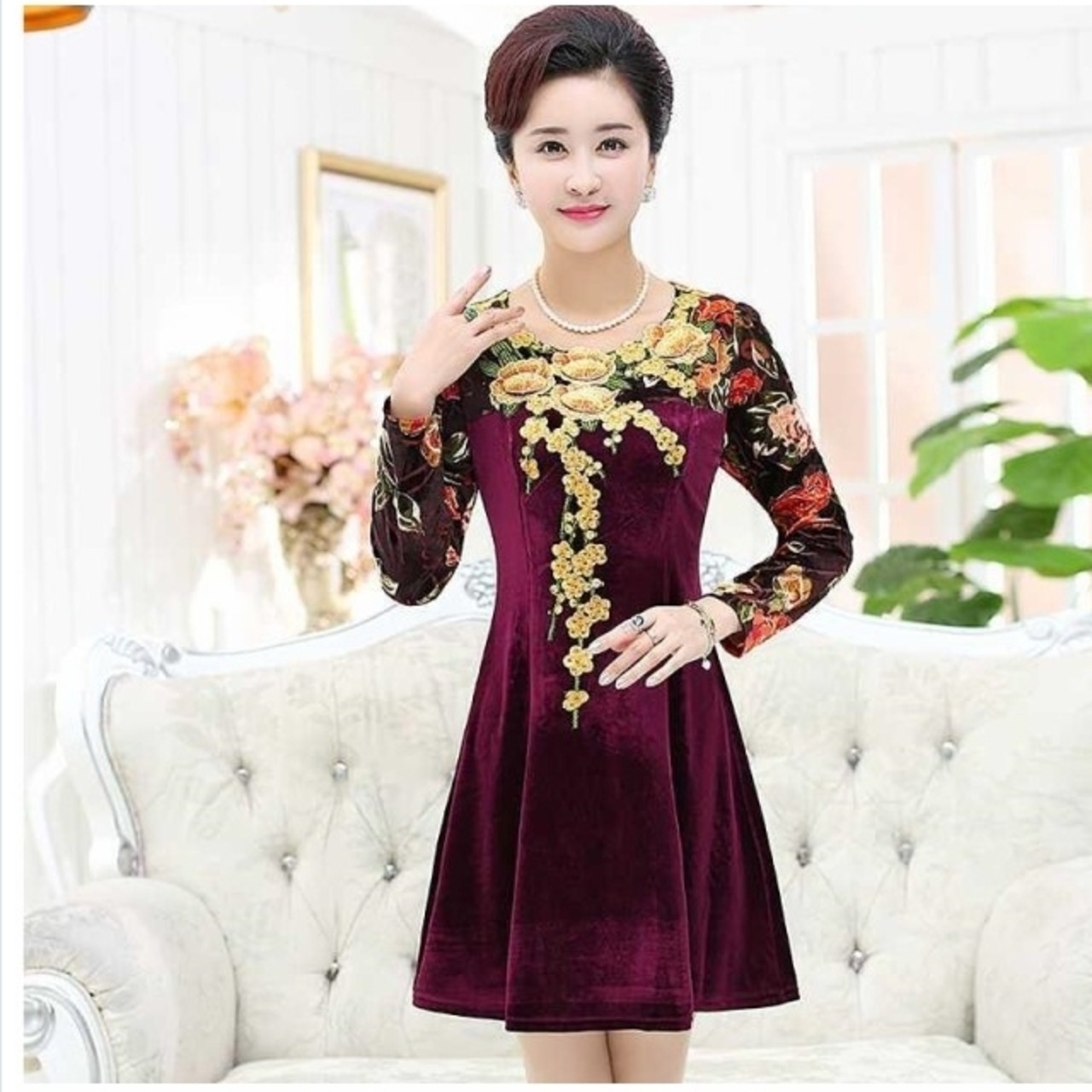 花柄 ロングワンピース 長袖 マキシ丈ワンピース Aライン プリント 花柄 長袖 ロング ワンピ フレアワンピ セレブ風 フォーマル 二次会