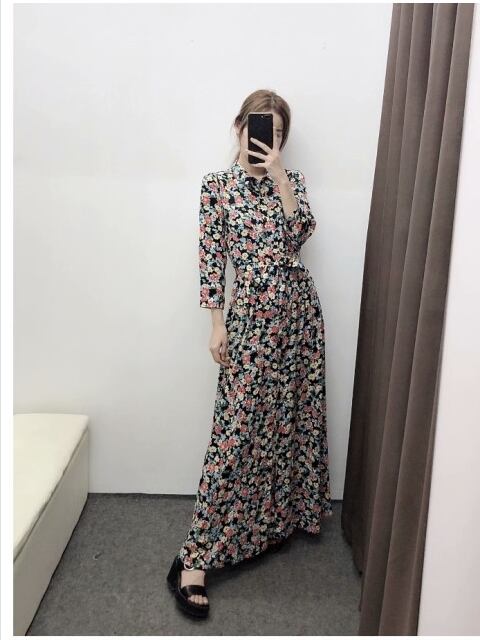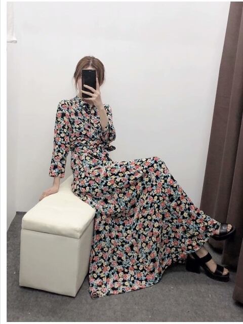 花柄 ロングワンピース 長袖 ワンピース レディース 花柄ワンピース 長袖 ロング丈 ウエストリボン シンプル 大人可愛い カジュアル