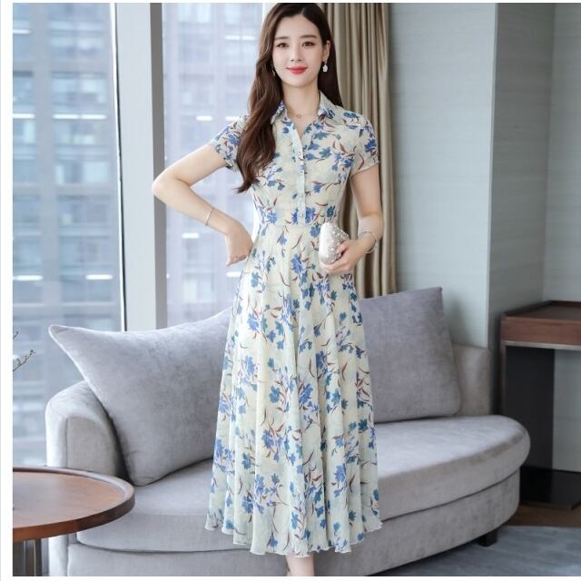 花柄 ロングワンピース 長袖 レディース ワンピース Vネック 長袖 ロング丈 フリル シフォン 花柄 ゆったり コットン 体形カバー