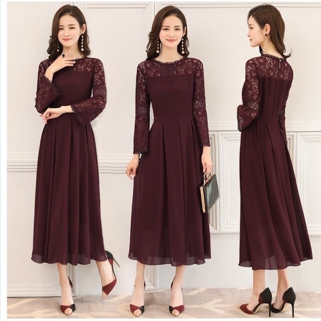 花柄 ロングワンピース 長袖 ブラックドレス ワンピース レディース パーティードレス 結婚式 二次会 お呼ばれ ロングドレス レース 20代