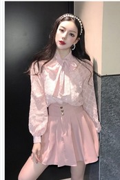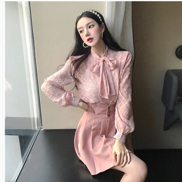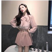 大人可愛い チュニック ワンピース 秋冬 レディース ワンピース 長袖 ツーピース風 レース リボンタイ ミニ丈 Aライン フレア キレイめ