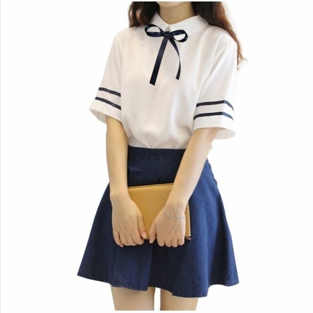 レトロ柄 ワンピース ワンピース レディース 半袖ワンピース 制服風 リボン フリル 甘ロリ ゴスロリ ウエストゴム バイカラー クラッシッ