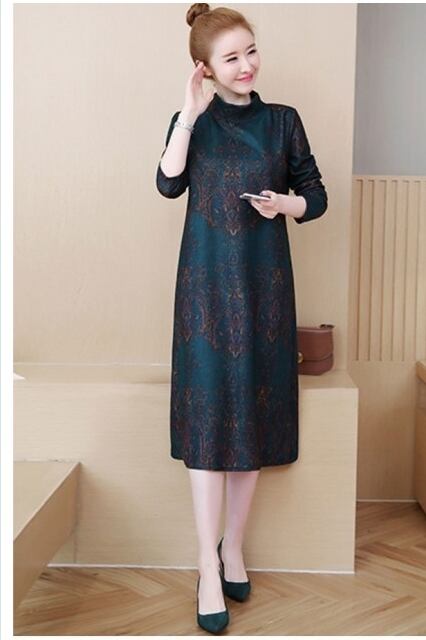 花柄 ロングワンピース 長袖 ワンピース ロングワンピース ロング丈 ゆったり ミモレ丈 花柄 体型カバー 長袖 タートルネック