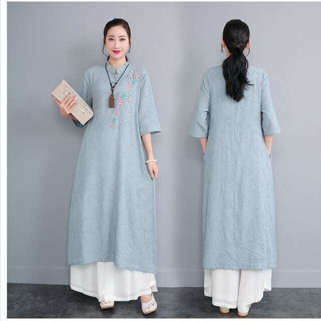 花柄 ロングワンピース 長袖 ワンピース ロングワンピース ロング丈 秋冬 切り替え 花柄 ハイネック長袖 チュニック ミモレ丈