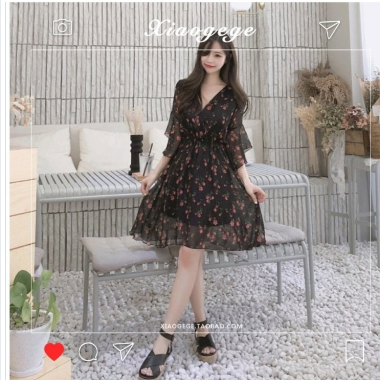 大人 ワンピース タイト 膝丈 ワンピース レディース 長袖ワンピース シフォンワンピース ひざ丈 花柄 Vネック 透け感 フリル