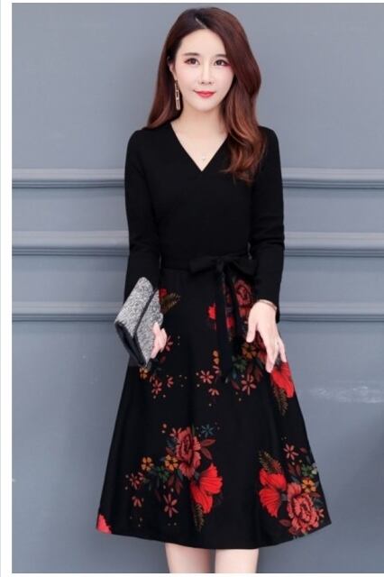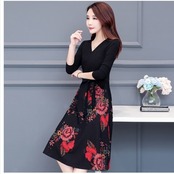 花柄 ロングワンピース 長袖 ワンピース ロングワンピース ロング丈 春秋 Aライン 長袖 花柄 Vネック ミモレ丈 切り替え