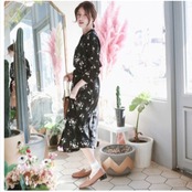 花柄 ロングワンピース 長袖 卸売可ワンピースレディースマキシ長袖花柄シフォンロング大きいサイズオシャレカジュアル着痩せ大人お出か
