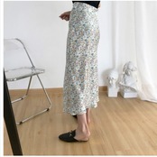 花柄 ロングワンピース 長袖 ワンピース ロング丈 花柄 ゆったり モノトーン 裾揺れ シック レトロ Iライン 韓国
