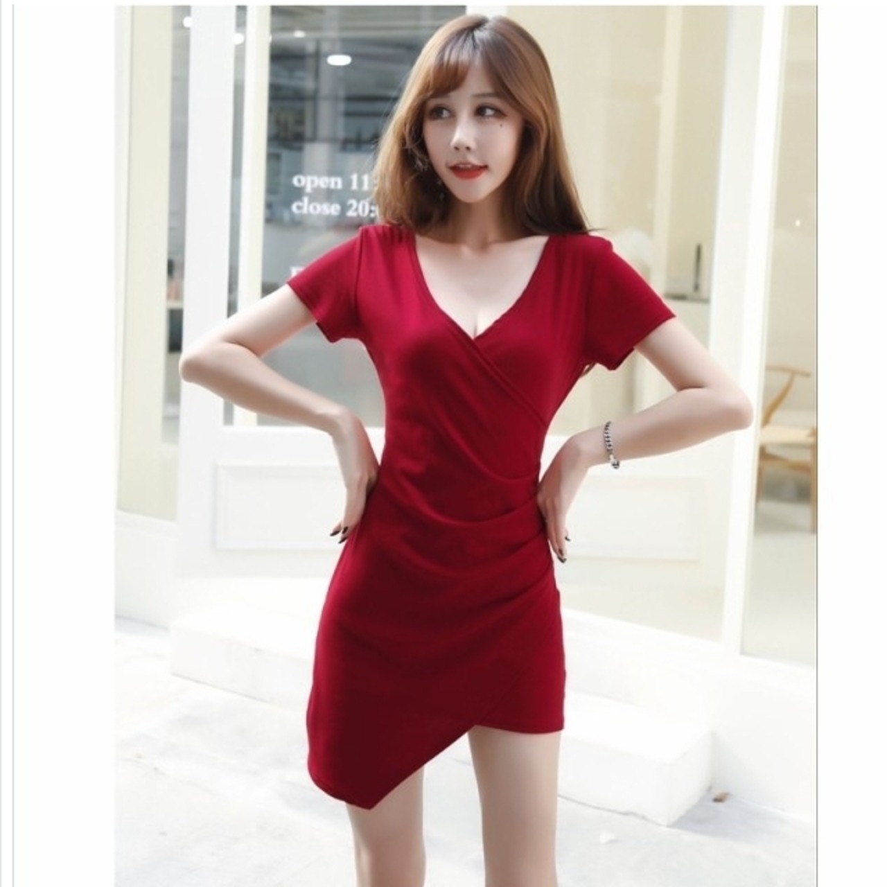 大人 ワンピース タイト 膝丈 エレガントなマドゲルスリムワンピース ひざ丈 タイト スリム シック Vネック風 フェミニン 大人 結婚式二