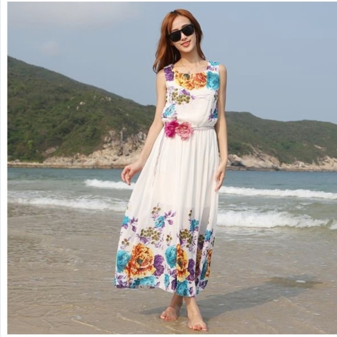 花柄 ロングワンピース 長袖 卸売可マキシワンピース夏大きいサイズレディースロング丈長袖ワンピースシフォン花柄チュニックワンピース