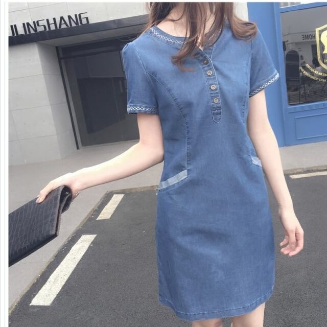 大人 ワンピース タイト 膝丈 デニムワンピース 膝丈 ワンピース デニム 半袖ワンピース ミモレ丈 タイトワンピ 大きサイズ かわいい