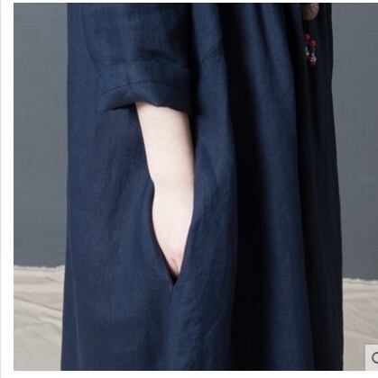 花柄 ロングワンピース 長袖 春新作 ロングワンピース レディース チュニック マキシ丈 体型カバー 綿麻 夏 夏服 花柄 刺繍 無地 ロング