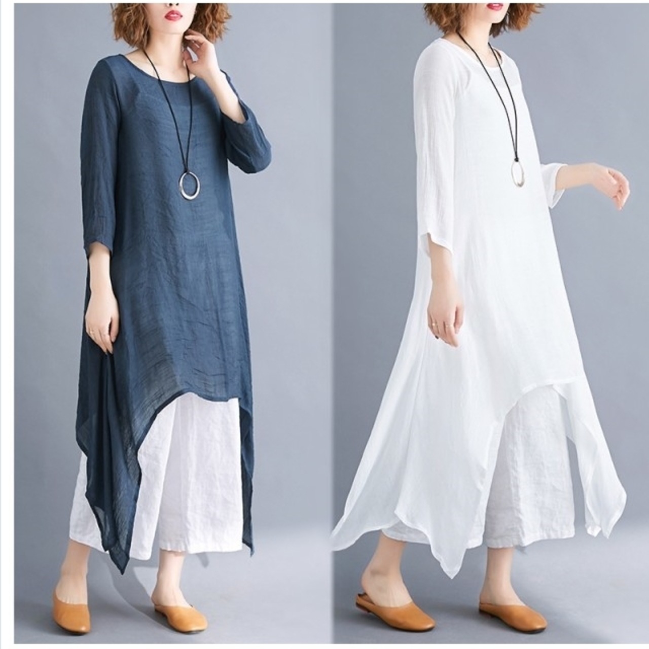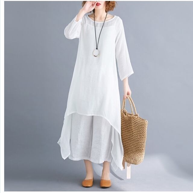 花柄 ロングワンピース 長袖 卸売可ワンピースレディースリネンコットンシンプルナチュラルゆったりレトロAラインマキシ体型カバーワンピ