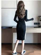 大人 ワンピース タイト 膝丈 エレガント セクシーネック ラインワンピース タイト 姫系ワンピース ひざ丈 ミドル丈 ミディアム丈