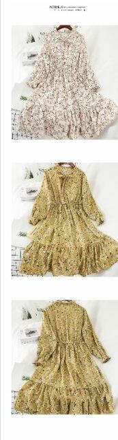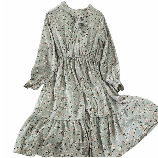 花柄 ロングワンピース 長袖 フレアワンピース レディース 花柄ワンピース ロングワンピース ミモレワンピース 長袖 フリルネック ワンピ