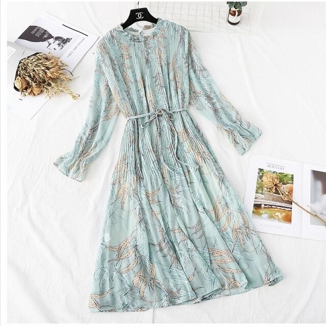花柄 ロングワンピース 長袖 ワンピース レディース 40代 通勤 花柄 お出かけ きれいめ ロング 長袖 結婚式ドレス シフォン 春夏秋 2色
