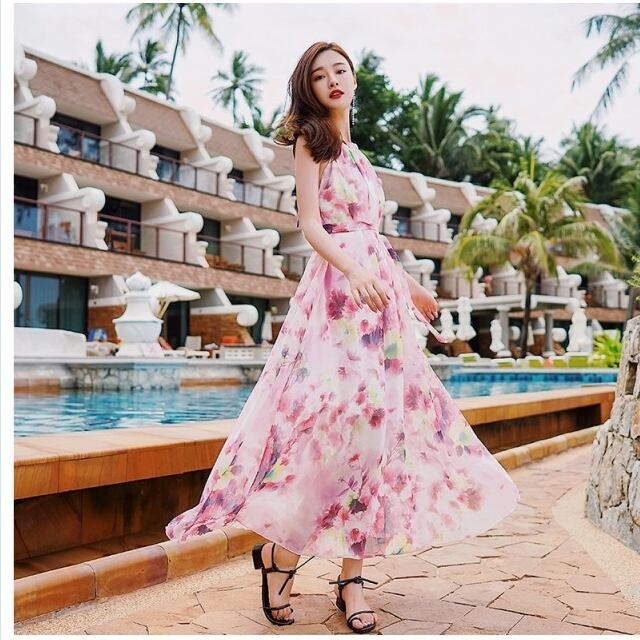 花柄 ロングワンピース 長袖 ワンピース 花柄 ロング パステルカラー シフォン 大人可愛い 長袖