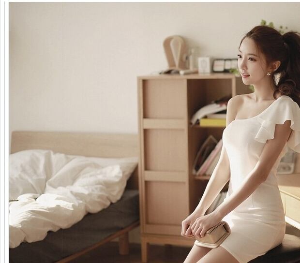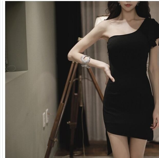 大人 ワンピース タイト 膝丈 韓国 ファッション レディース ワンピース ドレス ひざ丈 Vネック フリル マーメイド フィッシュテール ス