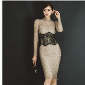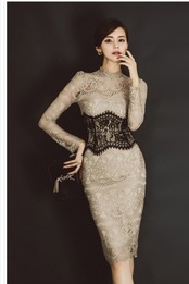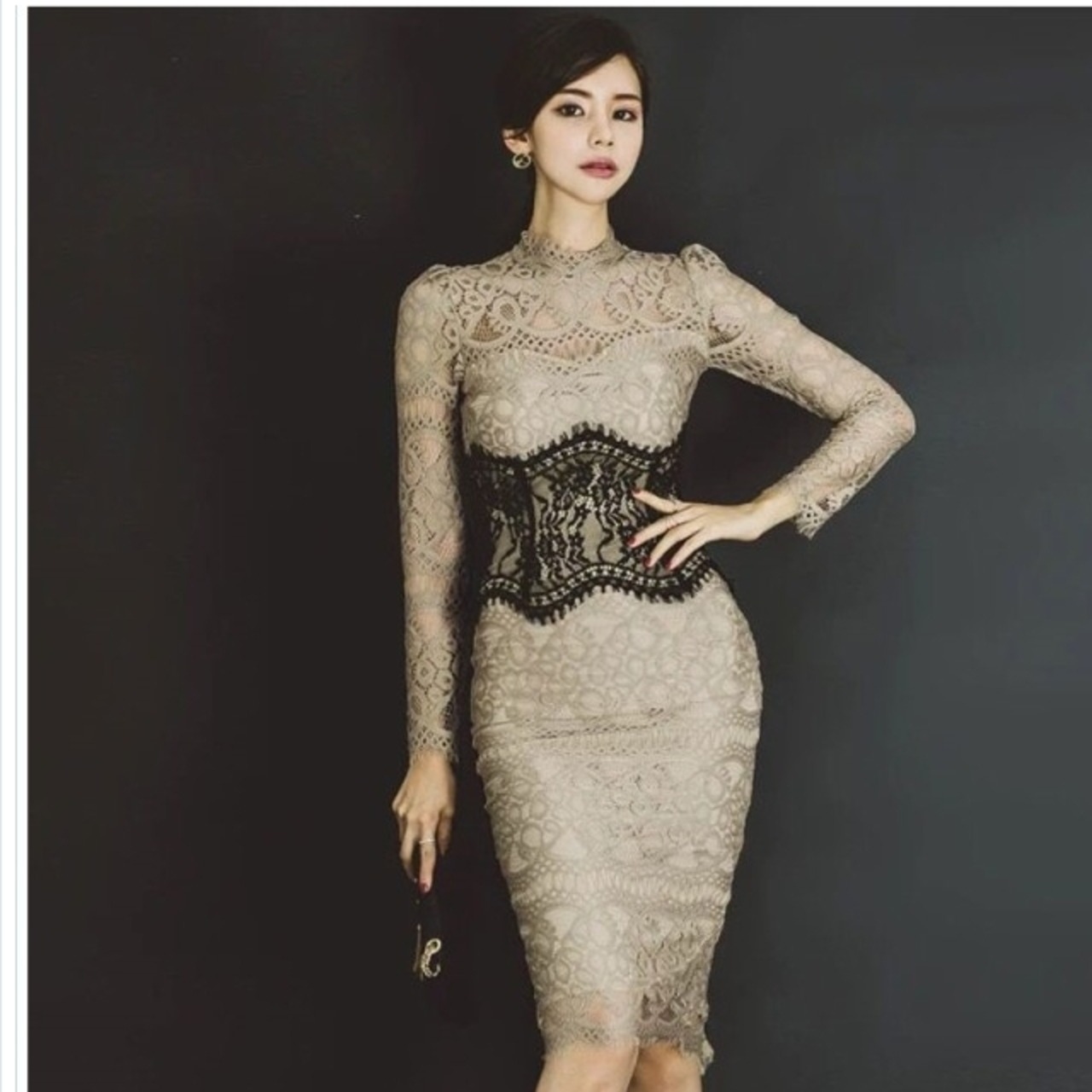 大人 ワンピース タイト 膝丈 ワンピース レース 刺繍 タイト セクシー ワンピ 長袖 袖あり ひざ 膝丈 ひざ丈 秋