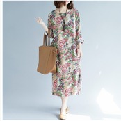 花柄 ロングワンピース 長袖 レディース 森ガール ワンピース ロングワンピース ミモレ丈 花柄 プリント 民族風 総柄 長袖 ゆったり Aラ