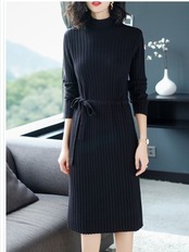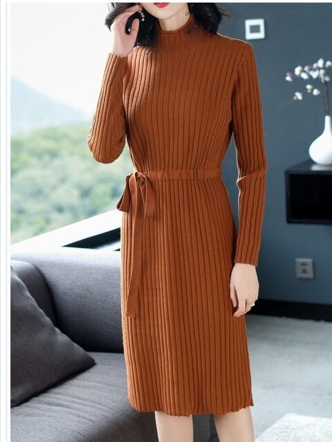 大人 ワンピース タイト 膝丈 ニットワンピース タイト 秋冬 長袖 膝丈ワンピース ハイネック リブニット 大きいサイズ ニットワンピ リ
