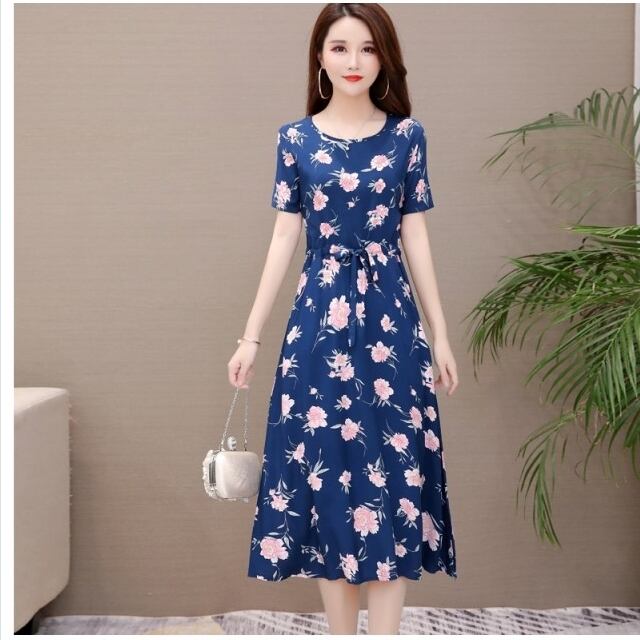 花柄 ロングワンピース 長袖 ワンピース 長袖 ロング丈 花柄 ボタニカル柄 紺 カジュアル Aライン 清楚 おしゃれ レトロ ウエストゴム
