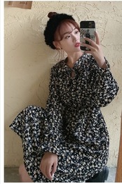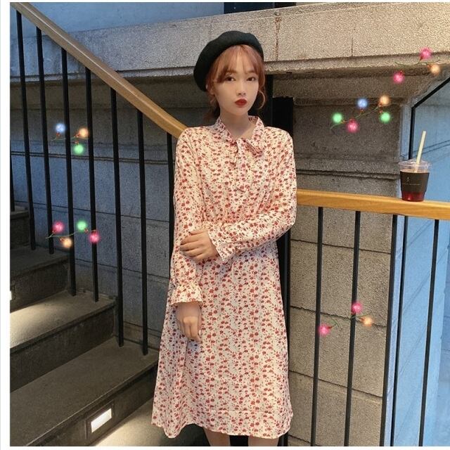 花柄 ロングワンピース 長袖 ワンピース レディース ミモレワンピース ロングワンピース 花柄ワンピース 小花柄 長袖 フレアワンピース