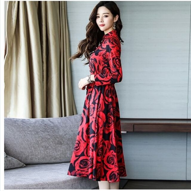 花柄 ロングワンピース 長袖 ワンピース レディース 3色 シャツワンピ 花柄 ロング丈 大きいサイズ 長袖 オシャレ Aライン きれいめ 通勤