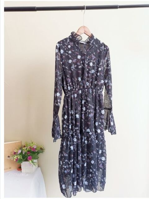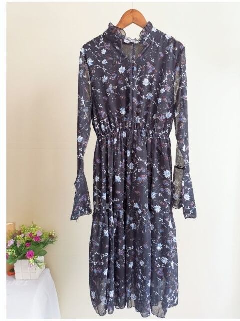 花柄 ロングワンピース 長袖 ワンピース レディース シフォン ロング丈ワンピース ミモレ丈ワンピース 小花柄 長袖ワンピース カジュアル