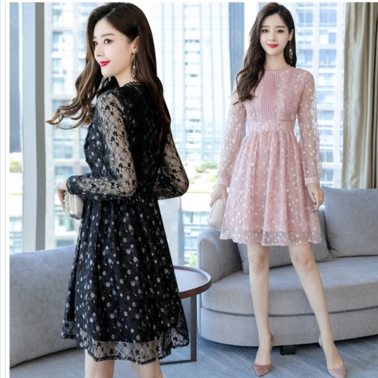 大人 ワンピース タイト 膝丈 パーティードレス 結婚式 二次会 お呼ばれ ワンピース 長袖 お呼ばれドレス 総レース ひざ丈 大きいサイズ