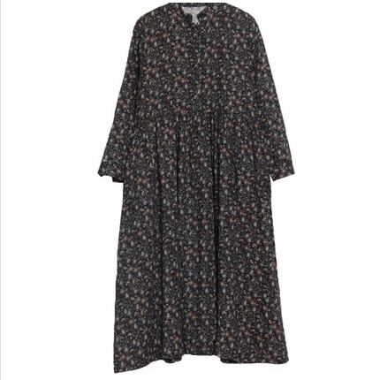 花柄 ロングワンピース 長袖 ワンピース レディース ロング丈 ひざ下 長袖 花柄 コットン レトロ リネン ガーリー かわいい ナチュラル