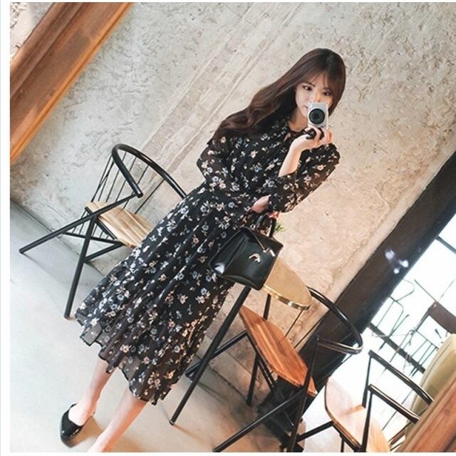花柄 ロングワンピース 長袖 マキシワンピース レディース 花柄 ロングワンピース マキシ丈 長袖 シフォン キレイめ 細身 韓国風 マキシ