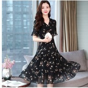花柄 ロングワンピース 長袖 ワンピース 長袖 レディース ウエストゴム ラウンドネック レース 春夏秋 フレアスカート ワンピ マキシ丈