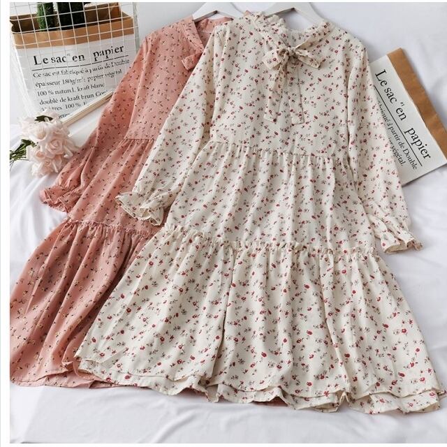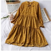 花柄 ロングワンピース 長袖 レディース 春夏 花柄 ワンピース 女性 丸襟 ロング丈 着痩せ 婦人服 長袖 シフォン キレイめ 上品 ワンピー