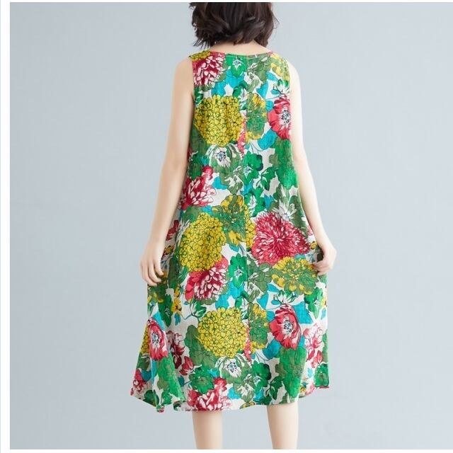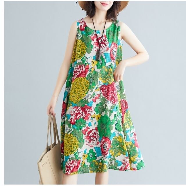 花柄 ロングワンピース 長袖 マキシワンピース レディース 40代 ロングワンピース 着痩せ 花柄 長袖 綿麻混ワンピース コットンリネン マ