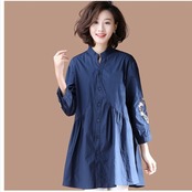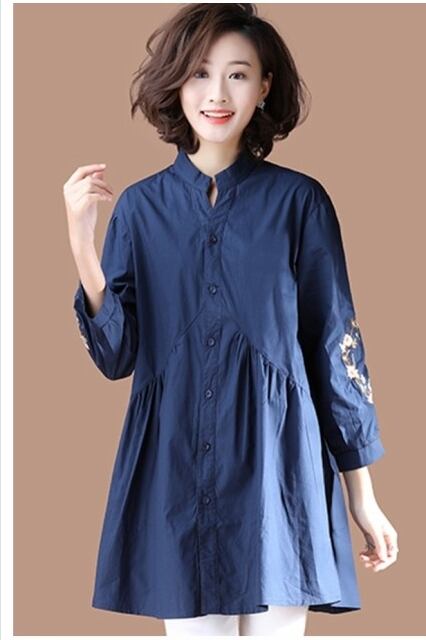 花柄 ロングワンピース 長袖 シャツワンピース デニム レディース ロングワンピース 長袖 秋ワンピース ゆったり 体型カバー デニムシャ