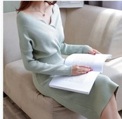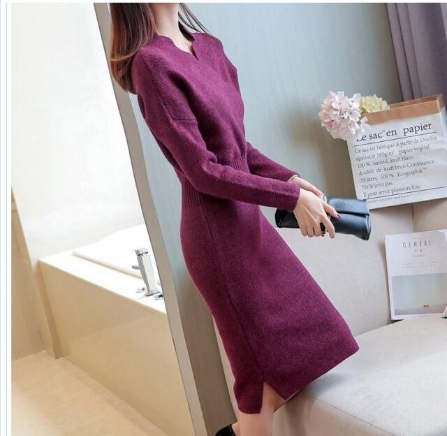 大人 ワンピース タイト 膝丈 ニットワンピース ロング スリット タイト レディース スカラップ カシュクール