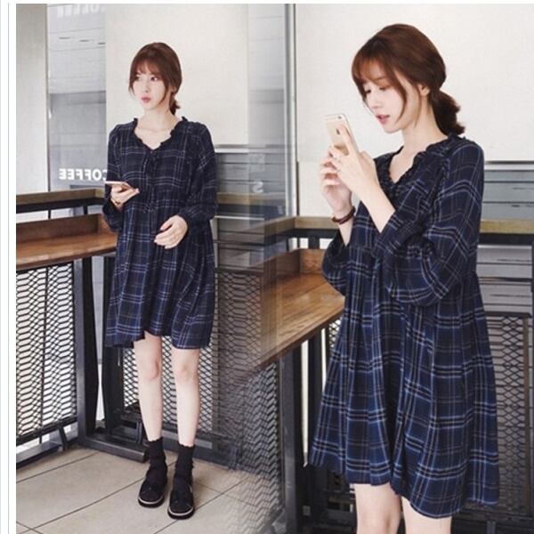 大人可愛い チュニック ワンピース 大人可愛い チェック パフスリーブ シャツワンピース