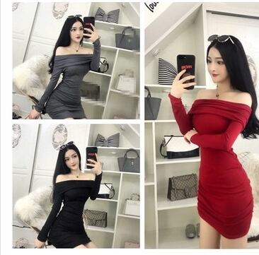 ボートネック ワンピース ニットワンピース キャミ レディース ボートネック ショート丈 長袖 秋冬 ニット タイト インナーワンピース ド