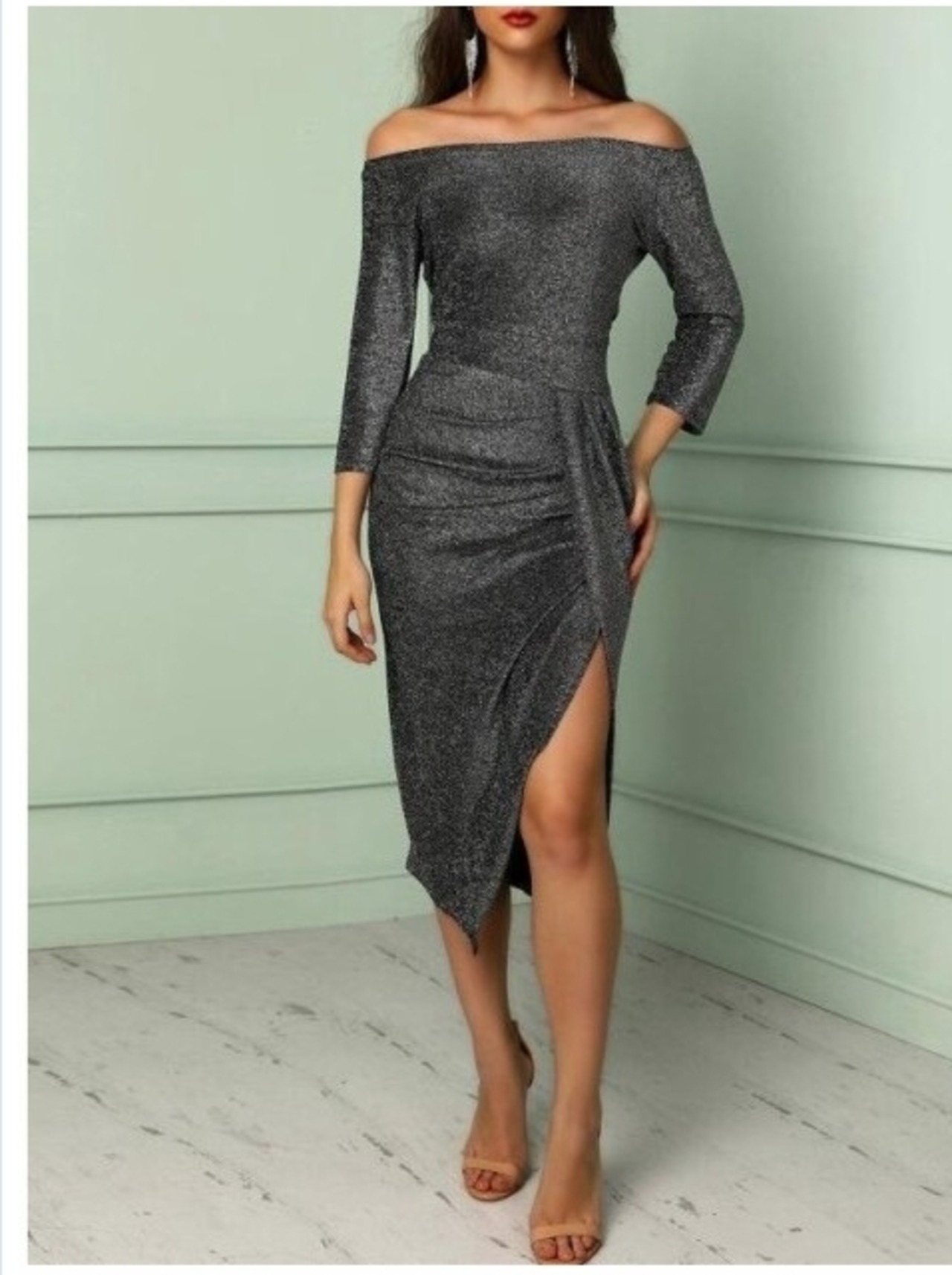 ボートネック ワンピース パーティードレス ロング丈 タックワンピース タイトワンピース 長袖 ボートネック レディース 春秋冬 キャバド