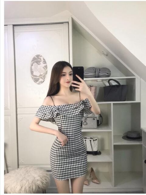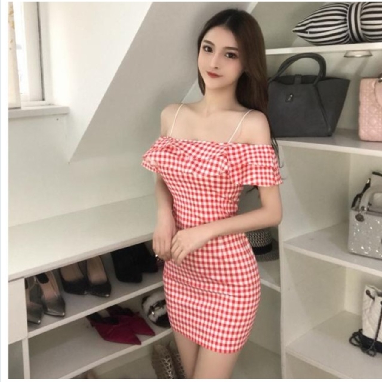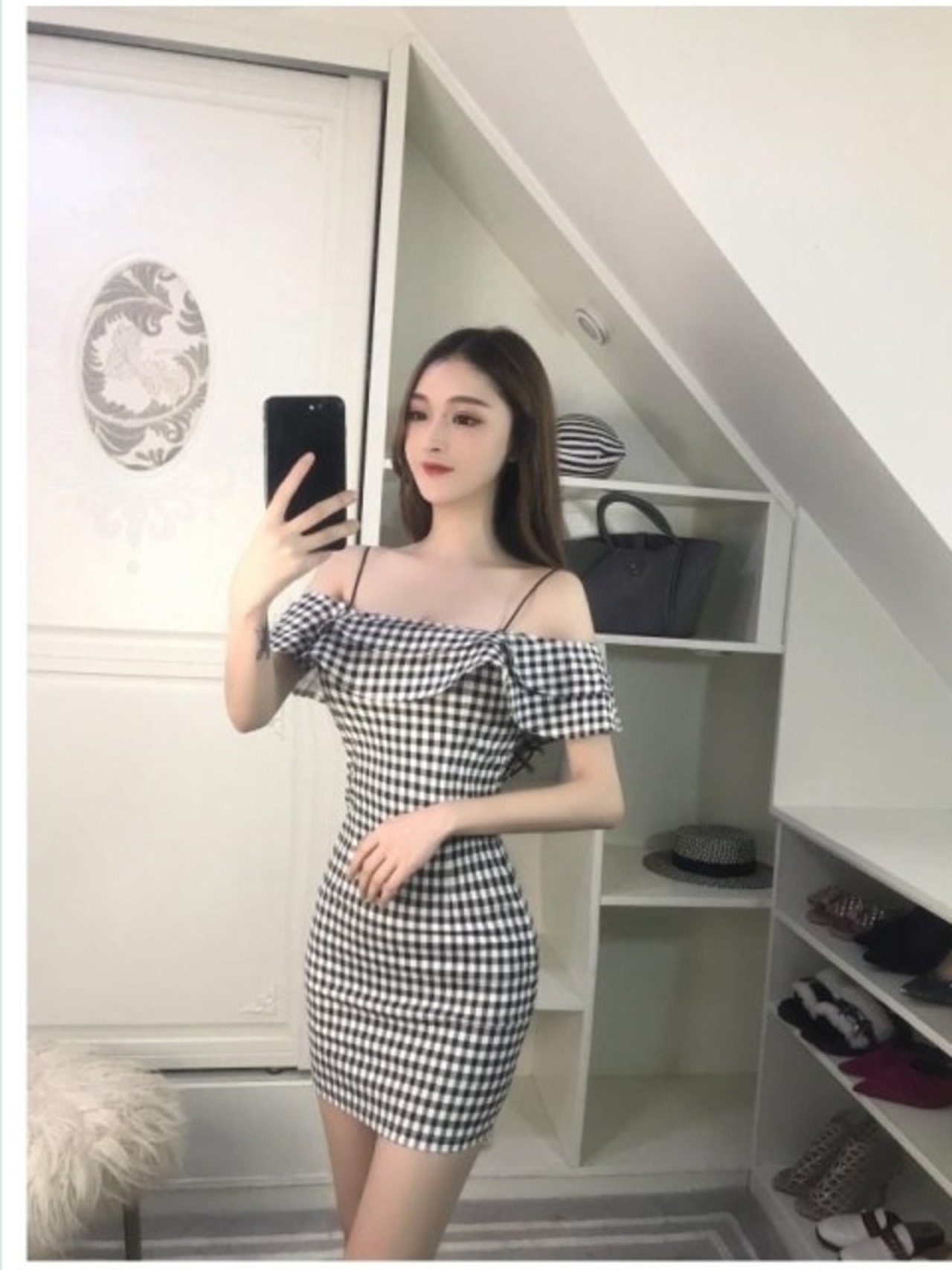 ボートネック ワンピース ドレス ワンピース レディース ボートネック 新作 着痩せ 夏 ブラックチェック オフショルダー 綺麗め スタイル