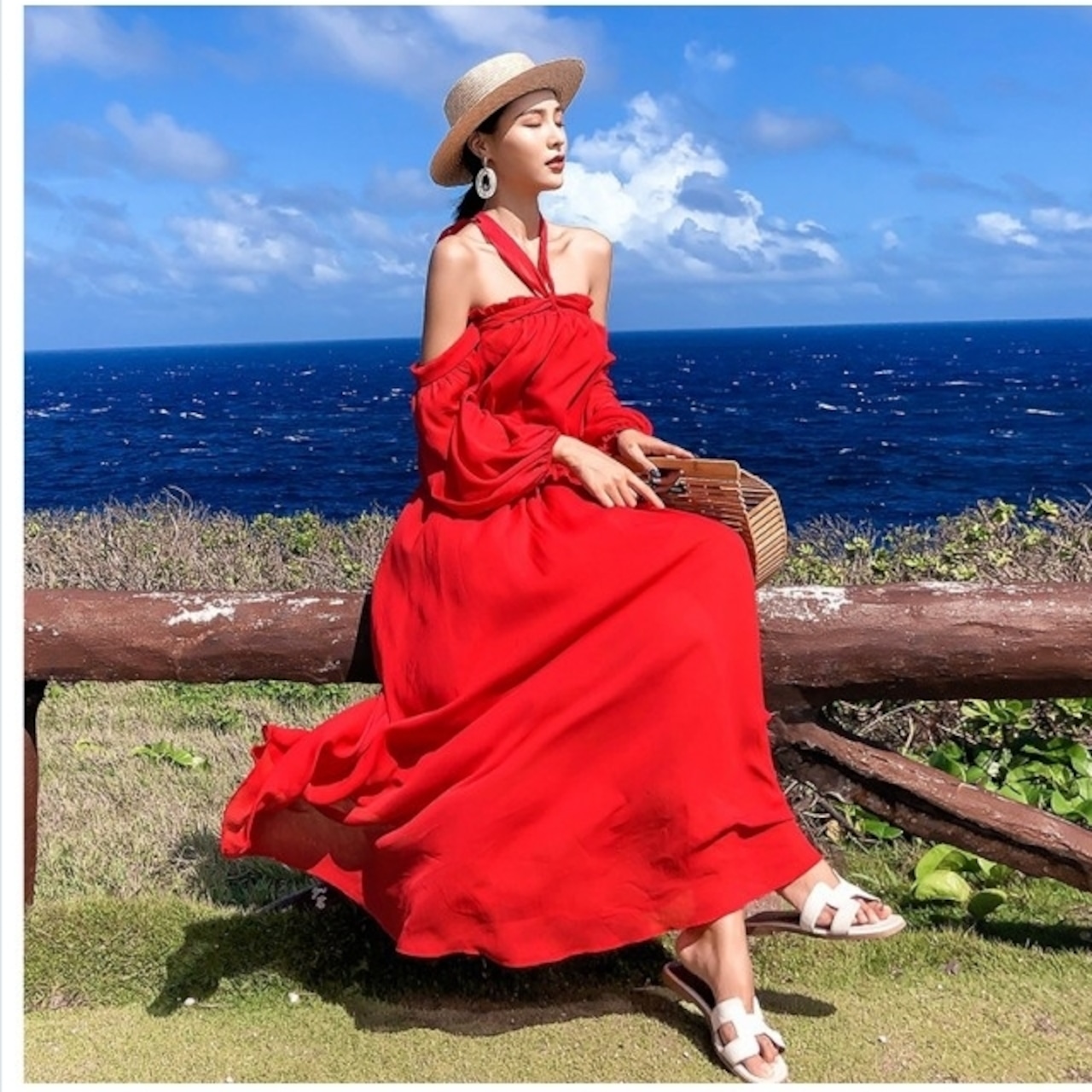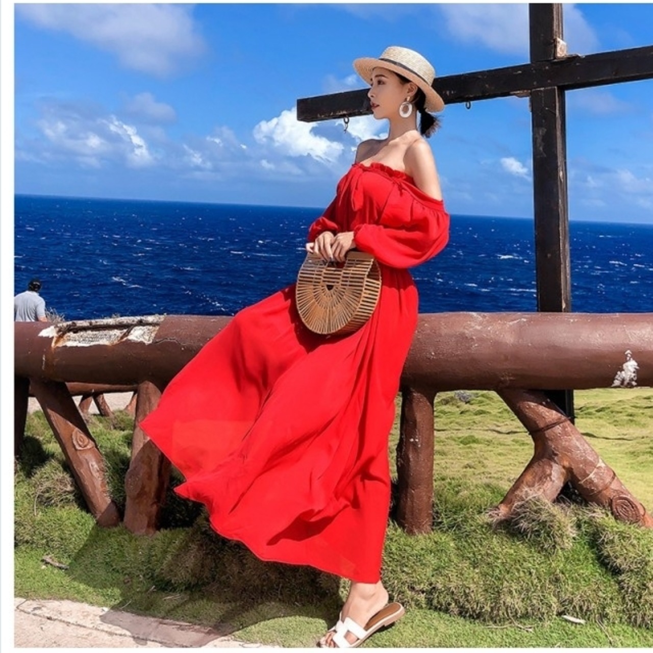 ボートネック ワンピース ワンピース大きいサイズレディースビーチワンピ マキシ丈 ロング丈ボートネック お呼ばれワンピ リゾートワンピ