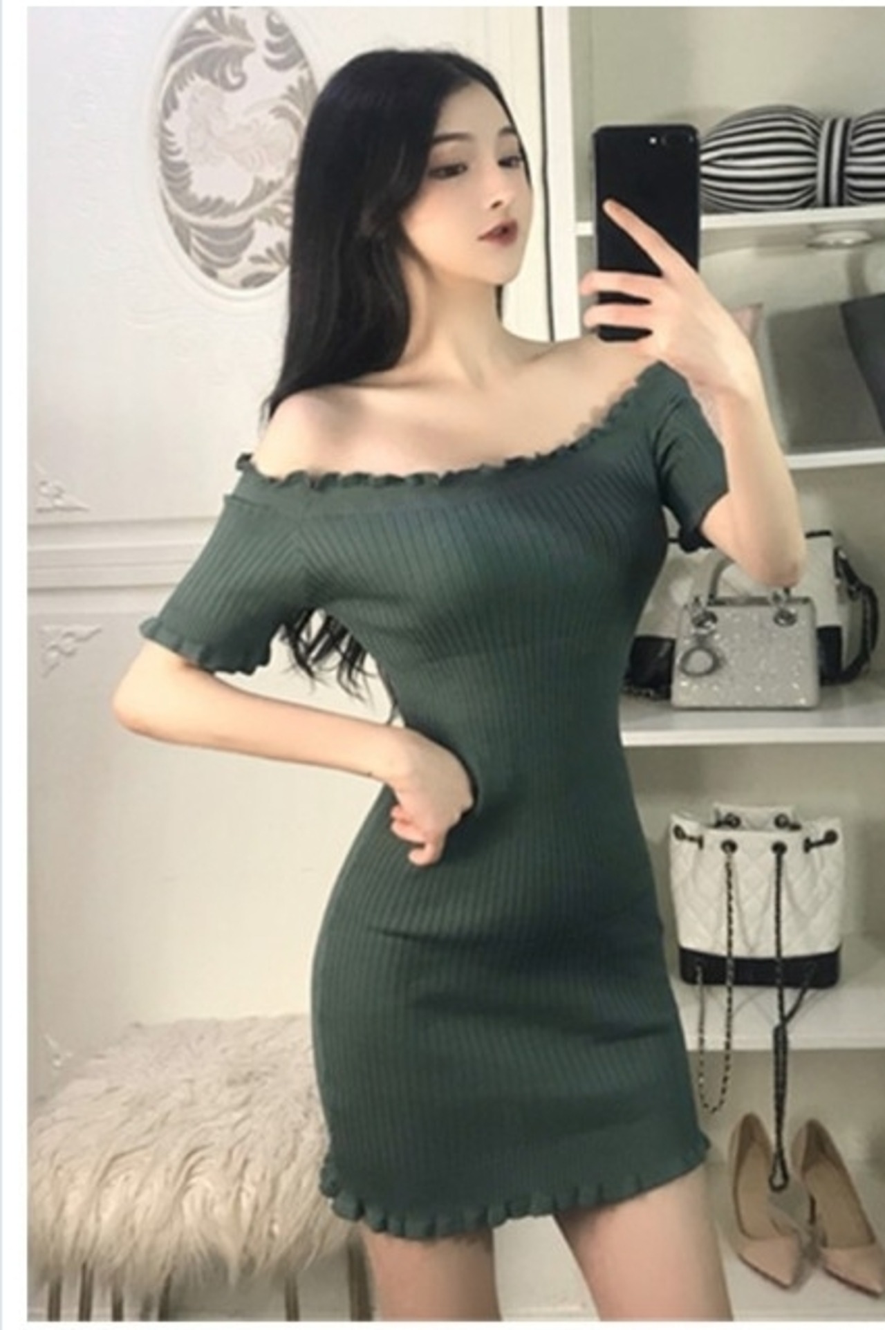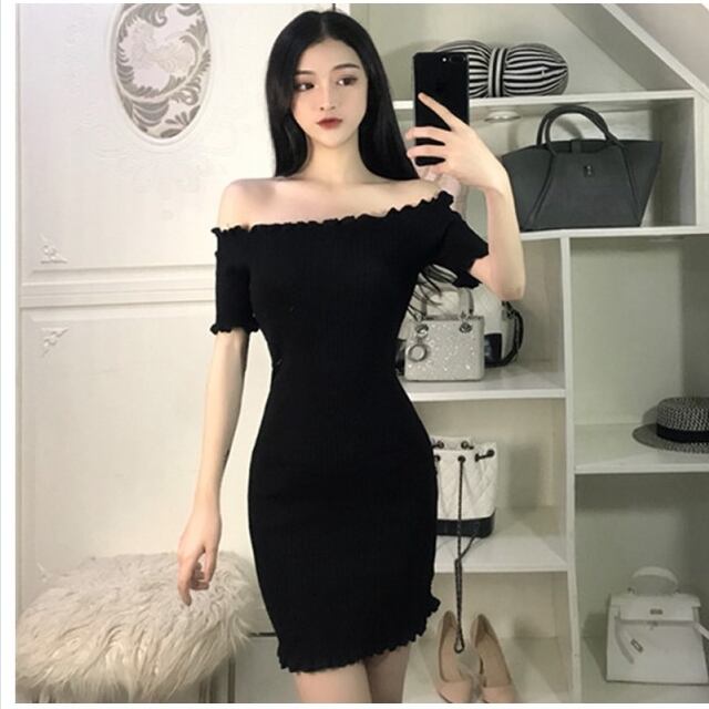 ボートネック ワンピース 夏 韓国ファッション可愛 気質 ボートネック レディーズ カジュアル セクシー 半袖 無地 合わせやすい ワンピー
