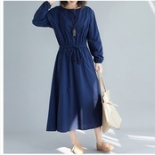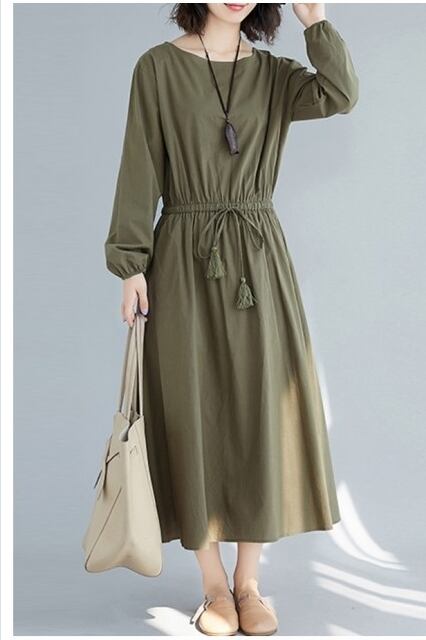 ボートネック ワンピース ウォッシャブル リネンライクツイルボートネックフレアーワンピース