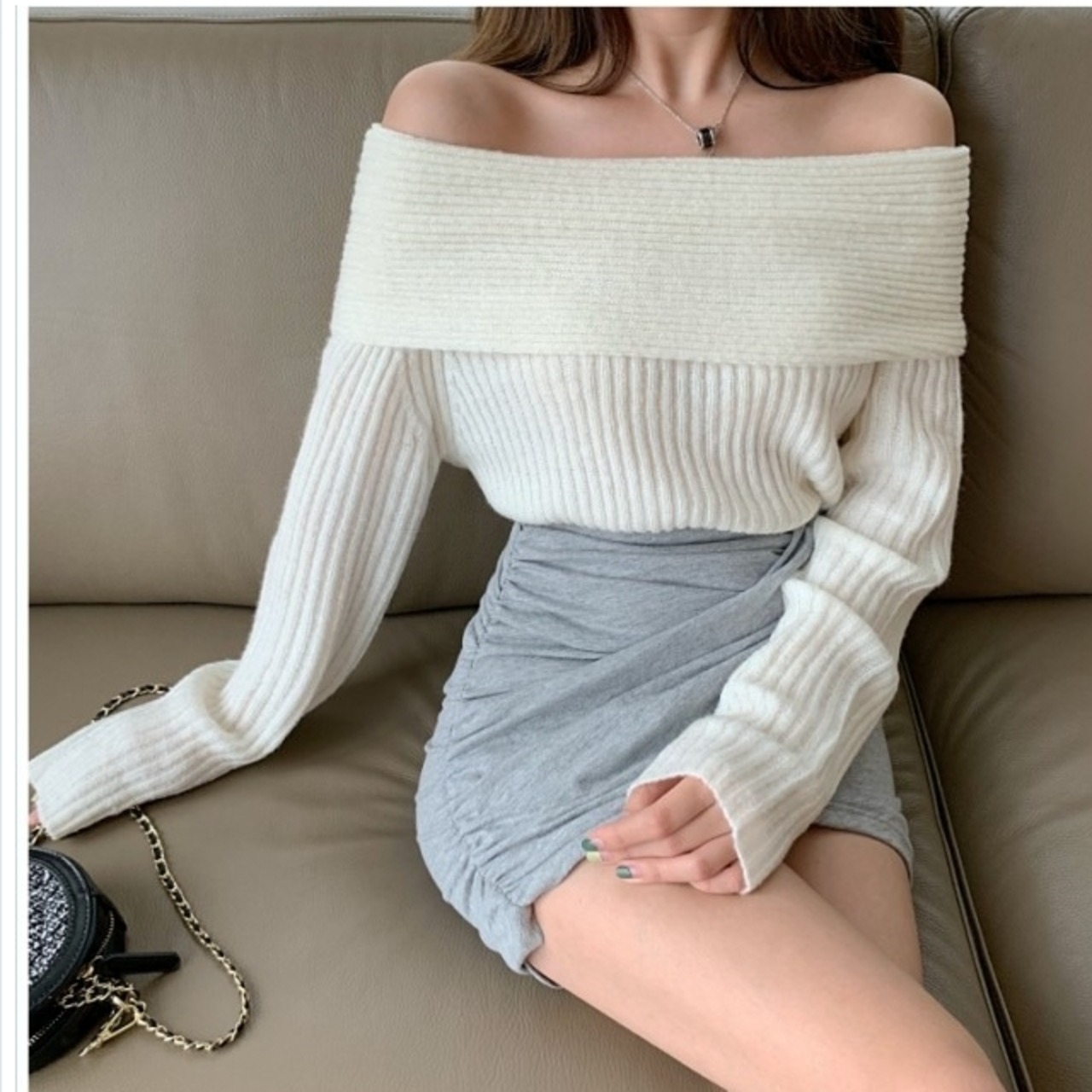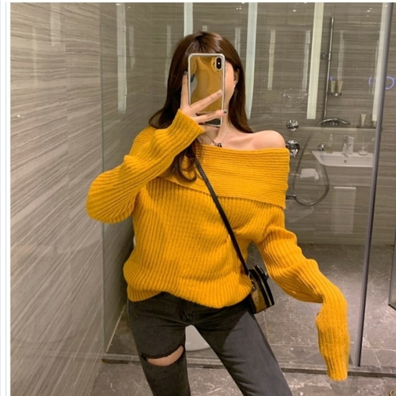 大きいサイズ コーディガン トップス ニット オフショルダー ゆるシルエット ワイドスリーブ 袖コンシャス 無地 イエロー ホワイト ブル