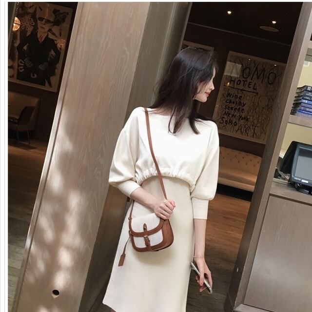 大きいサイズ レディース 春服 韓国 ファッション 大きいサイズ ワンピース ミディ丈 膝丈 ボートネック ドルマンスリーブ オフィス 上品