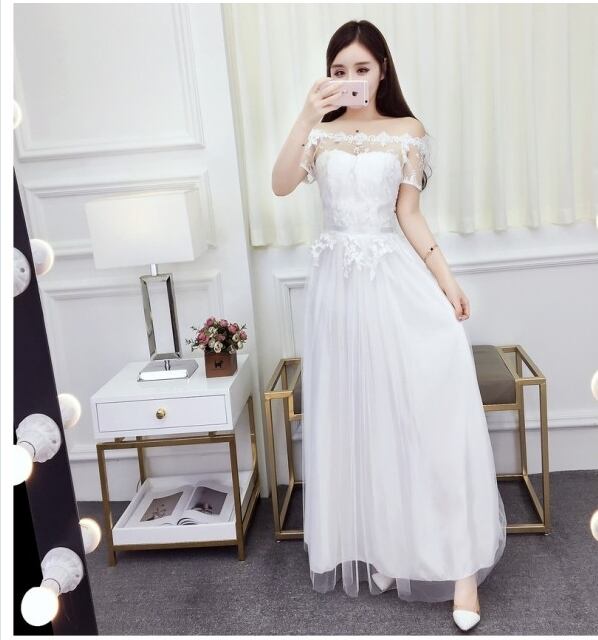 ボートネック ワンピース エレガント ウェディングドレス 着痩せ ボートネック パーティードレス 二次会 披露宴 花嫁 半袖